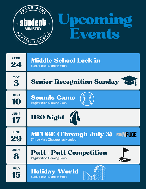 Get the latest from Belle Aire's Student Ministry